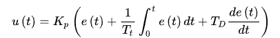 PID算法未简化的公式是u(t) = Kₚ × e(t) + (1/Tᵢ) ∫ e(t) dt + Td × (de(t)/dt)